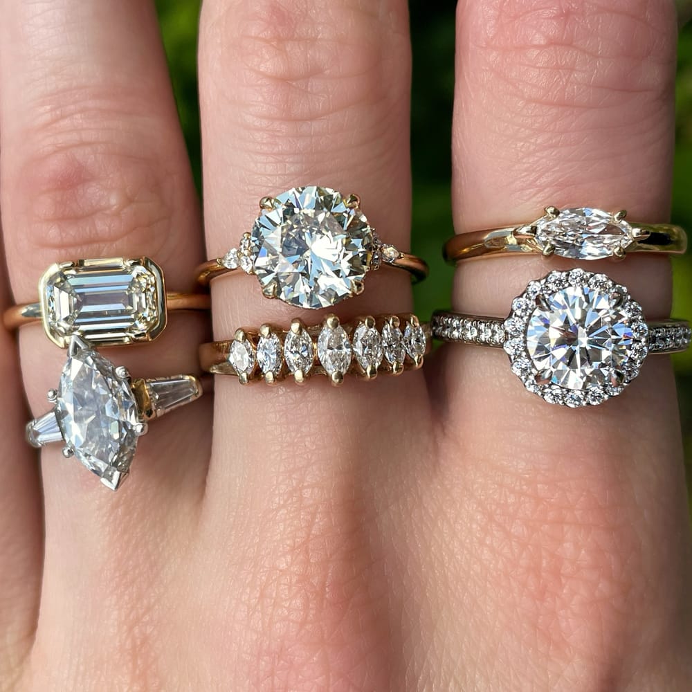 A 14k white gold 1.43 ctw marquise cut Diamond engagement ring with two flanking tappered baguette Diamonds. Comes with GIA report (#1226314097).