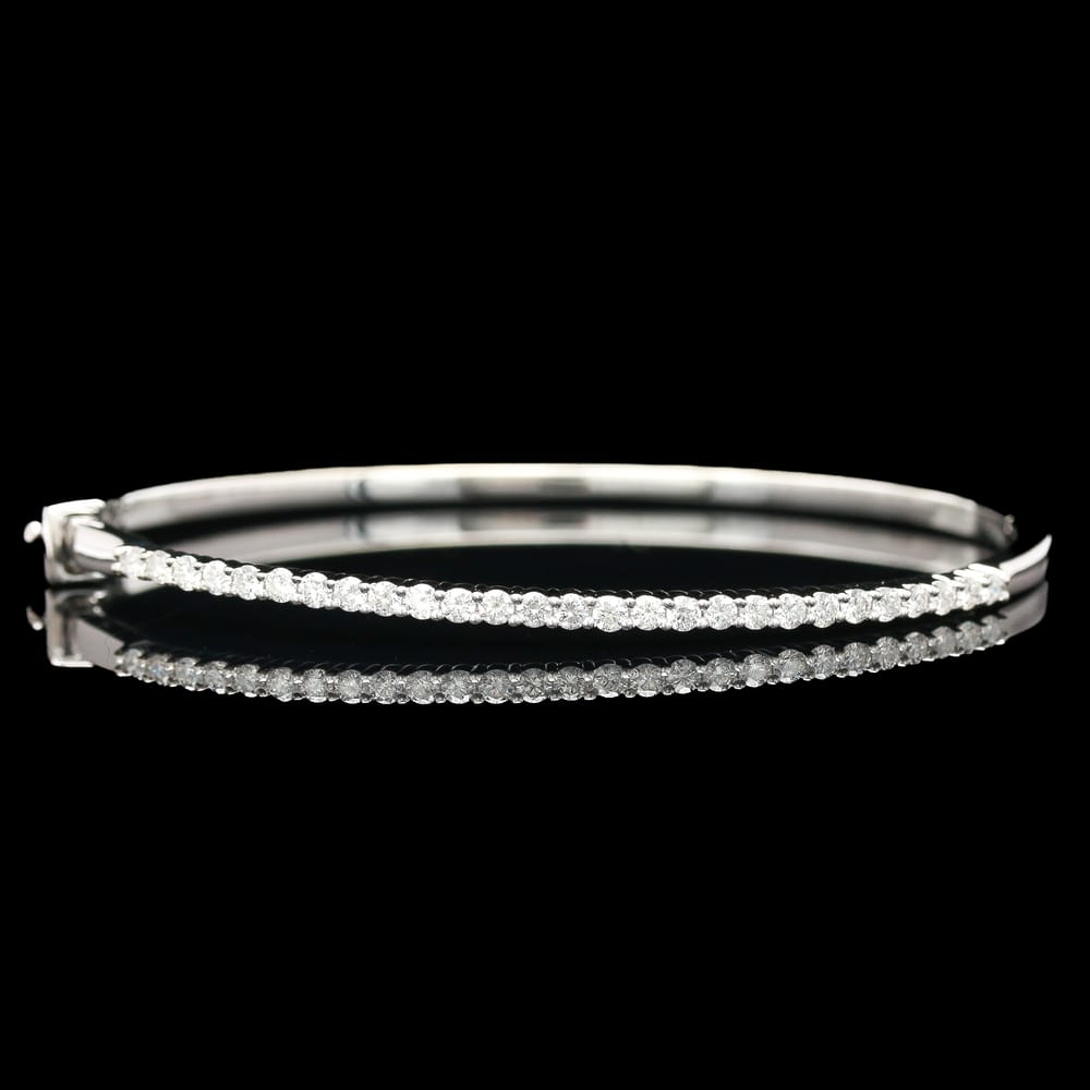 This contemporary bracelet features a polished 14K white gold design adorned with round natural diamonds, delivering elegance for any occasion.