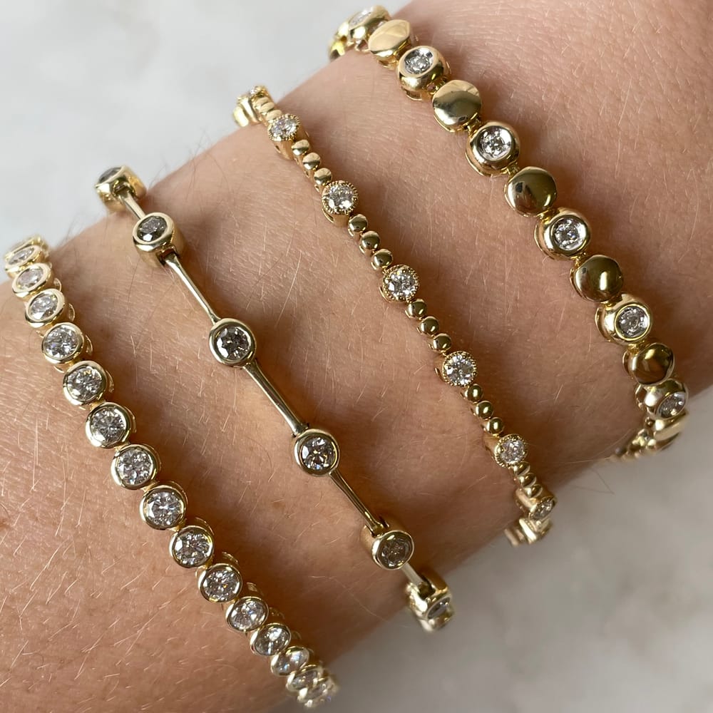 This exquisite tennis bracelet features 20 round natural diamonds with a total weight of 0.40 carats and alternating with polished solid gold beads, all set in polished 14K yellow gold, designed for women.