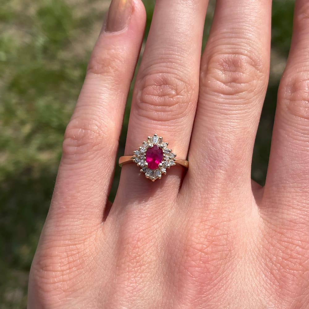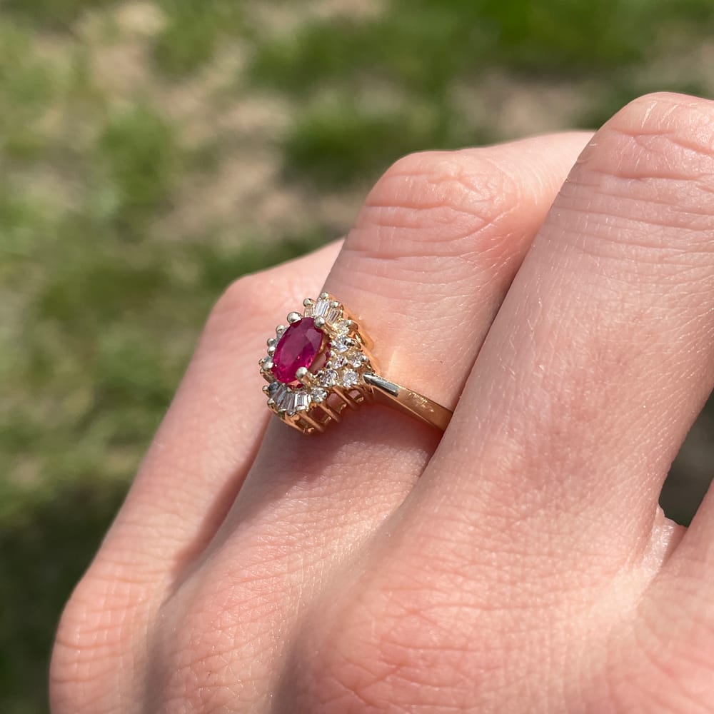 14k Yellow Gold Ruby & Diamond Halo Ring