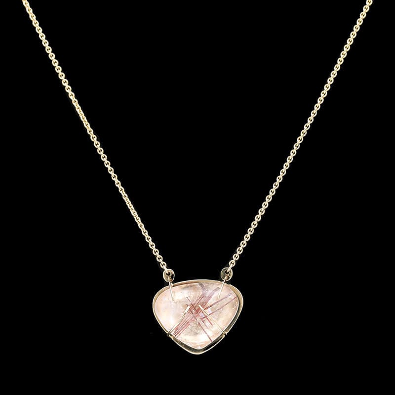 A 14k yellow gold Tourmalated Quartz cabochon pendant necklace.