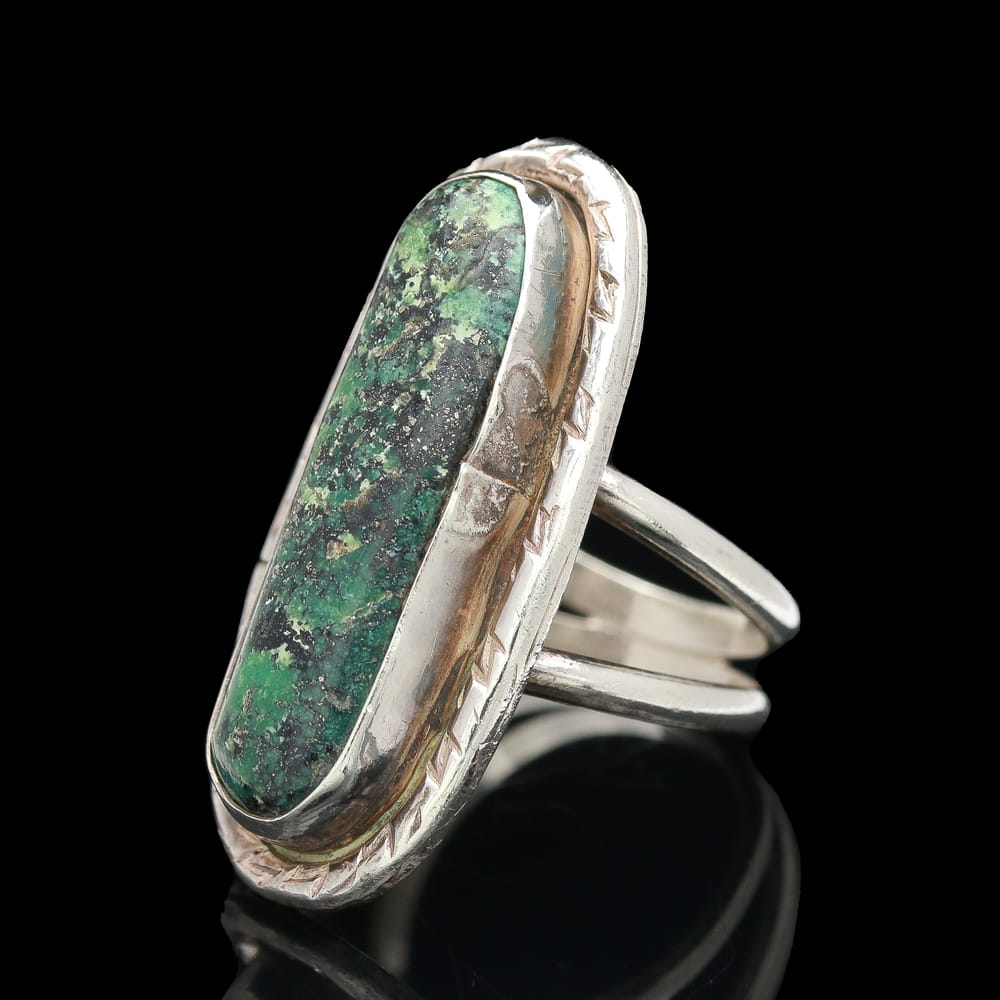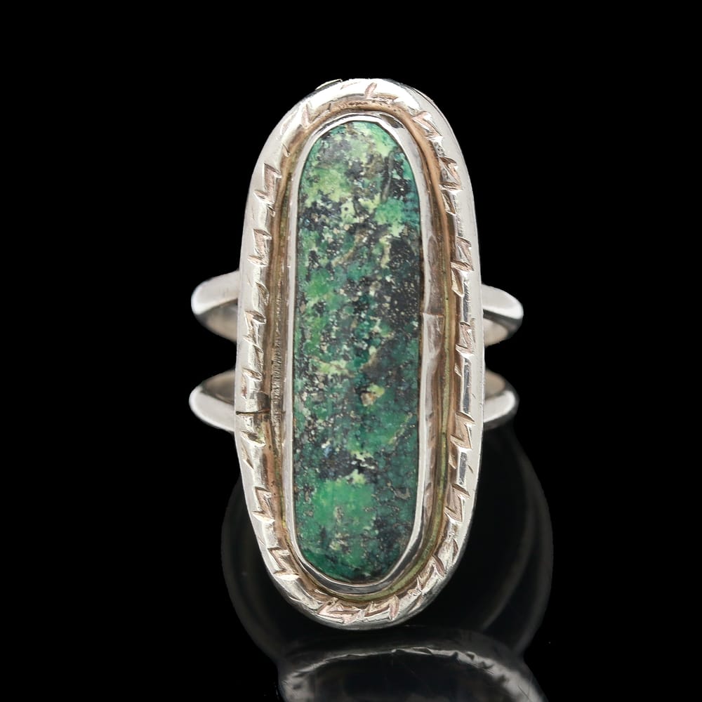 This exquisite unisex ring features a natural cabochon turquoise stone, elegantly set in .925 silver with an engraved finish, perfect for those who appreciate classic and vintage style.