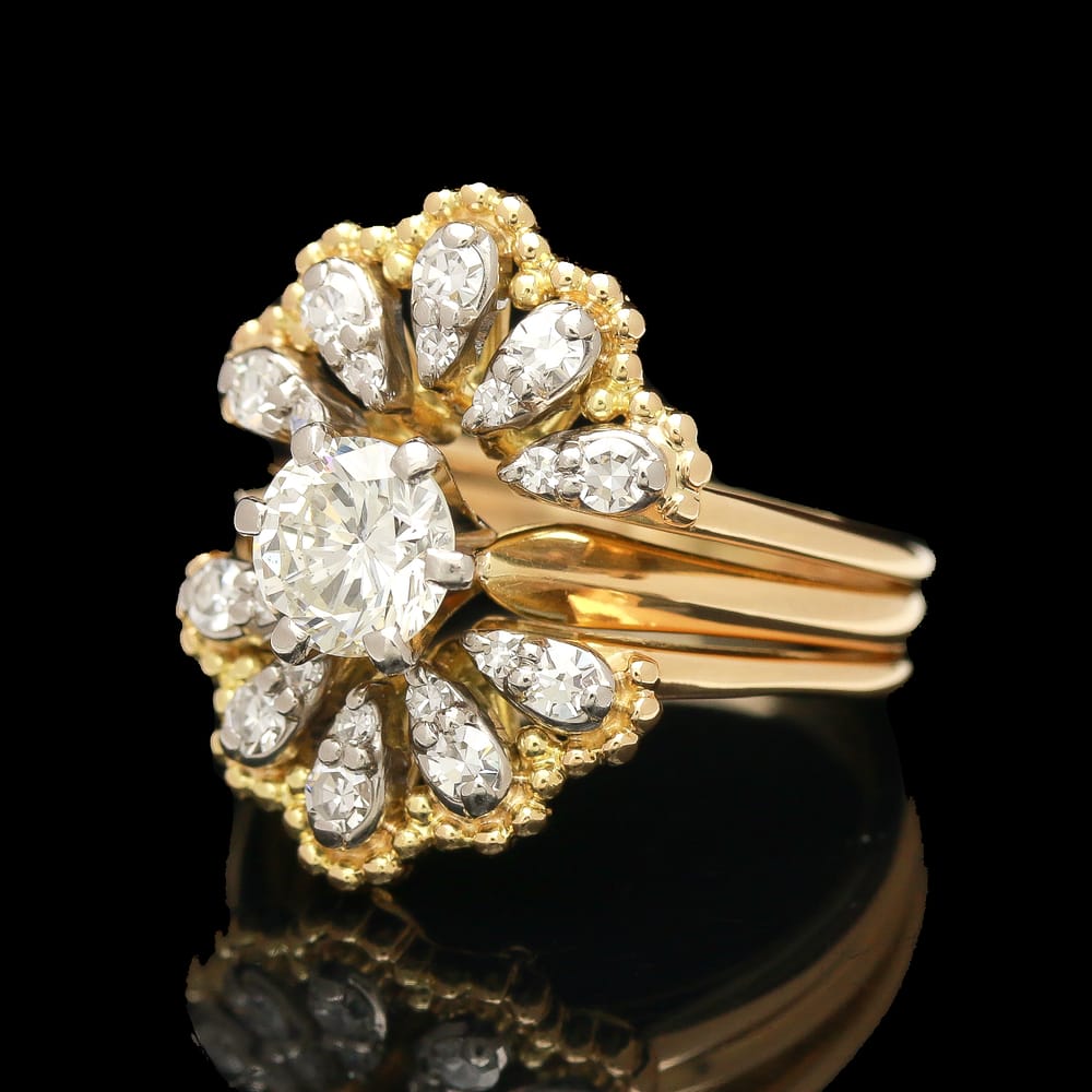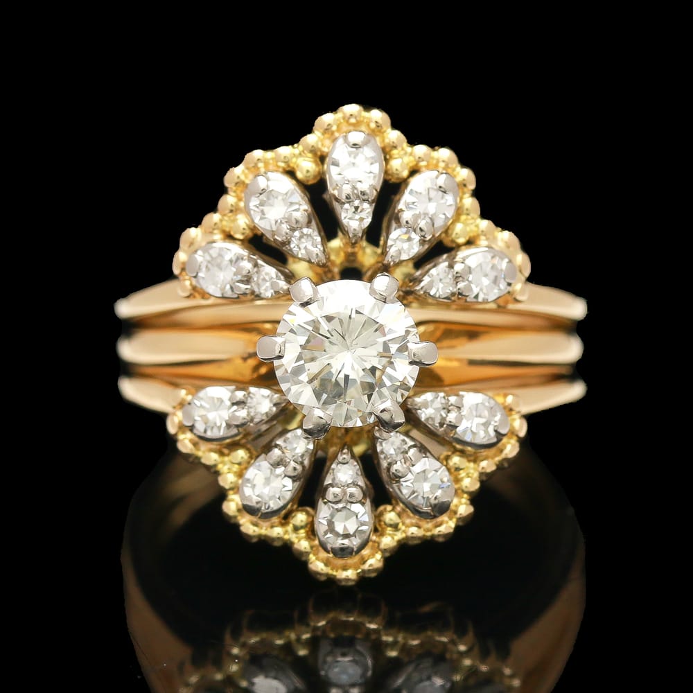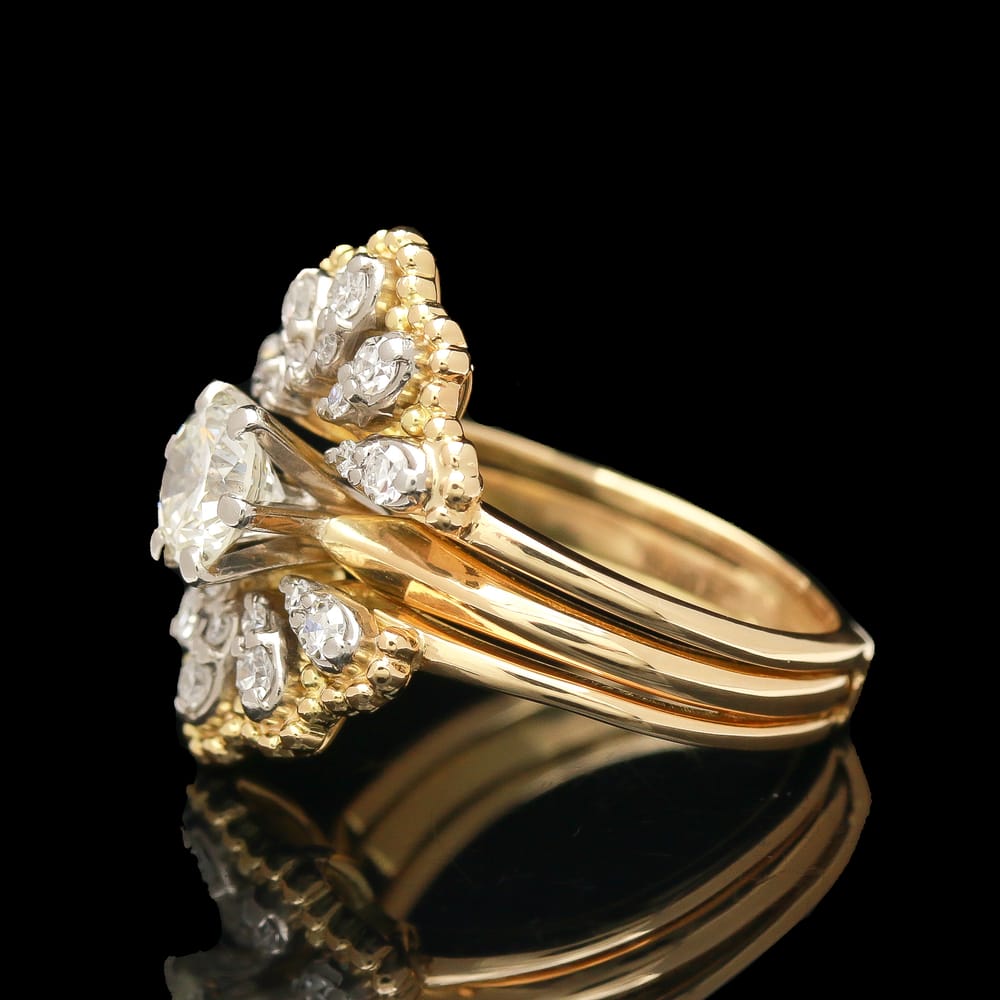 Vintage 18k Two Tone 1.05 ctw Diamond Ring Wedding Set